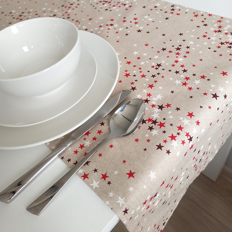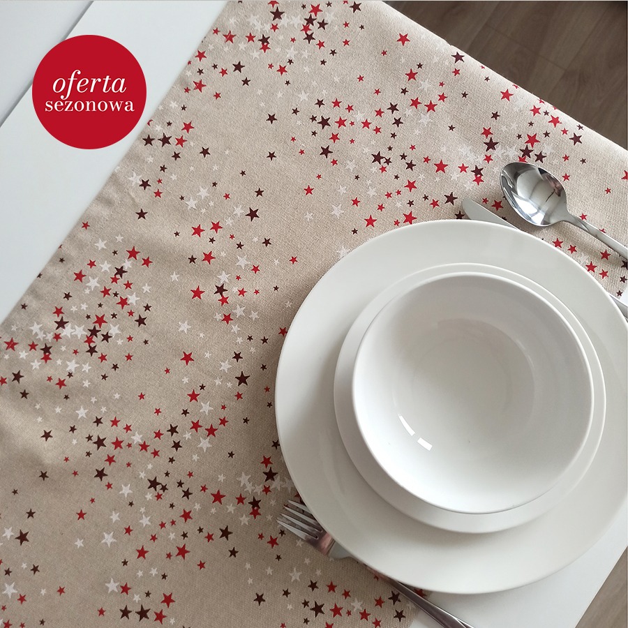 Bieżnik w świątecznym wydaniu – piękna dekoracja stołu, która pomoże stworzyć niepowtarzalny klimat. Bieżnik uszyty z tkaniny w przepiękny świąteczny wzór. Idealnie komponuje się z białym obrusem.