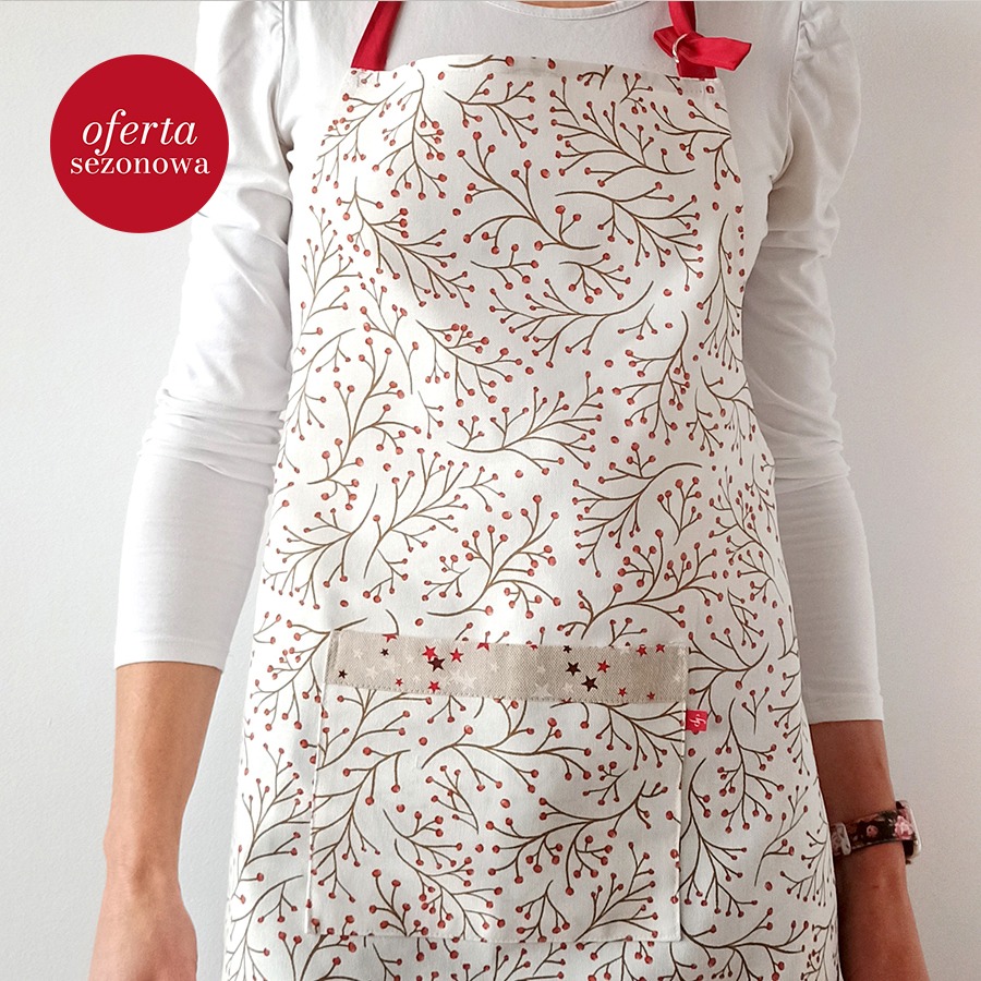 Wyjątkowy klimat można stworzyć na wiele sposobów. Wypieki, to zdecydowanie jedno z lepszych rozwiązań, by w domu zapanowała niezwykła atmosfera. Aby komponować się z całą resztą, świetnym rozwiązaniem będzie również świąteczny fartuszek uszyty z pięknej wzorzystej tkaniny. Idealny dla miłośników kuchennych aktywności, jak również dla tych, którzy chcą „dowyglądać” swoje eksperymentalne wypieki;).