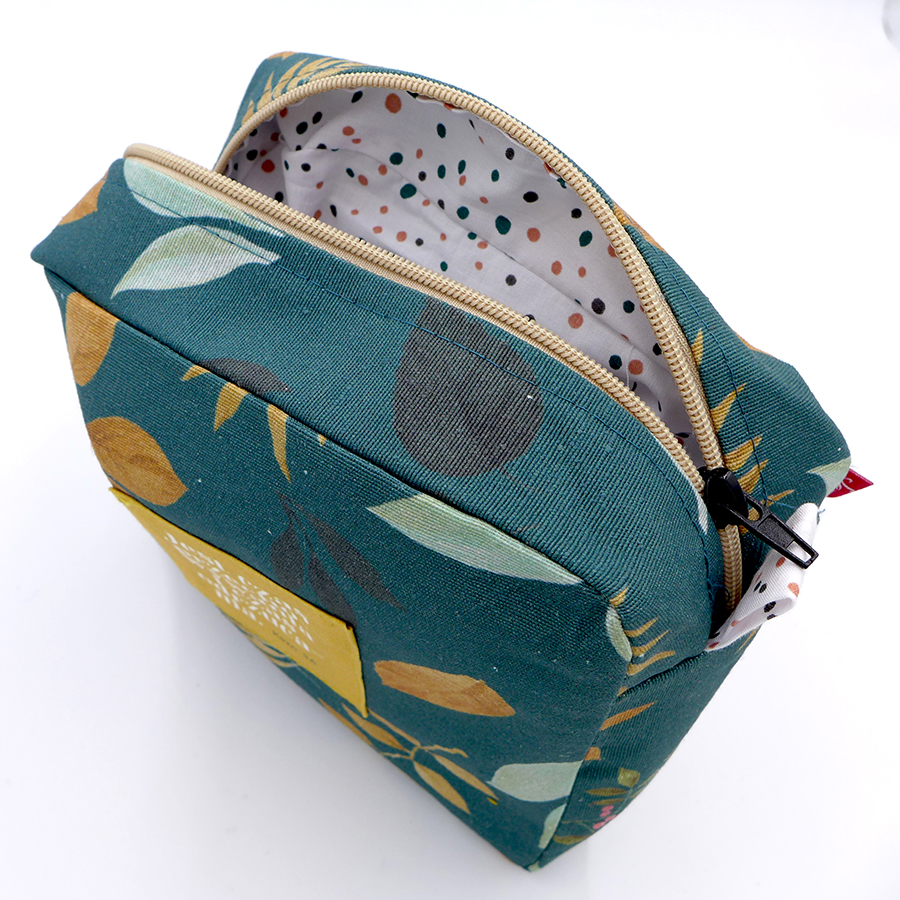 Niezwykle oryginalna kosmetyczka, która nie tylko będzie cieszyć oczy, ale sprawdzi się podczas wycieczki czy niewielkiego wypadu. Wykonana jest z materiałów najwyższej jakości, w ciekawy sposób łącząc wzory części wierzchniej oraz podszewki. Dodatkowo ozdobiona naszywką z cytatem.
