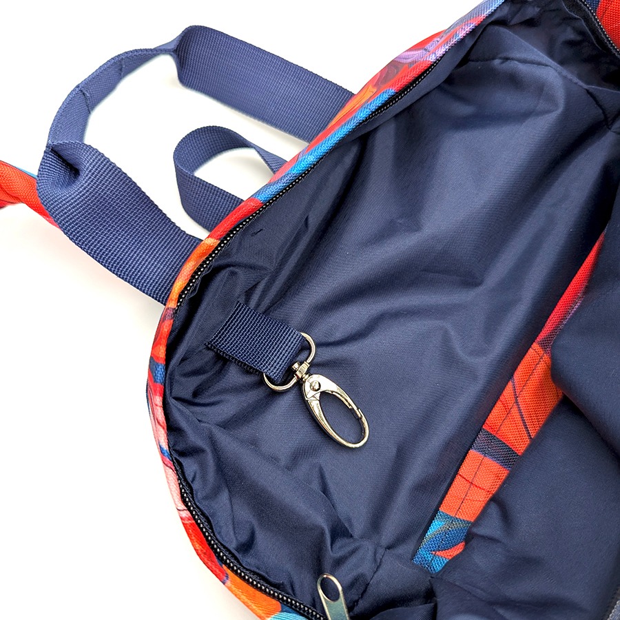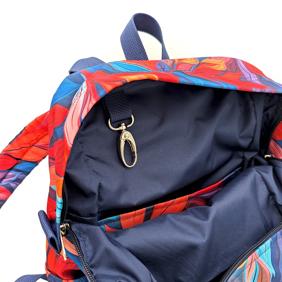 Odkryj niezwykły, ręcznie wykonany plecak miejski, który łączy funkcjonalność z wyjątkowym designem. Dzięki intensywnym odcieniom granatu, czerwieni i pomarańczu, ten model doda charakteru każdej stylizacji. Idealny na co dzień – do pracy, na uczelnię, czy spacer.