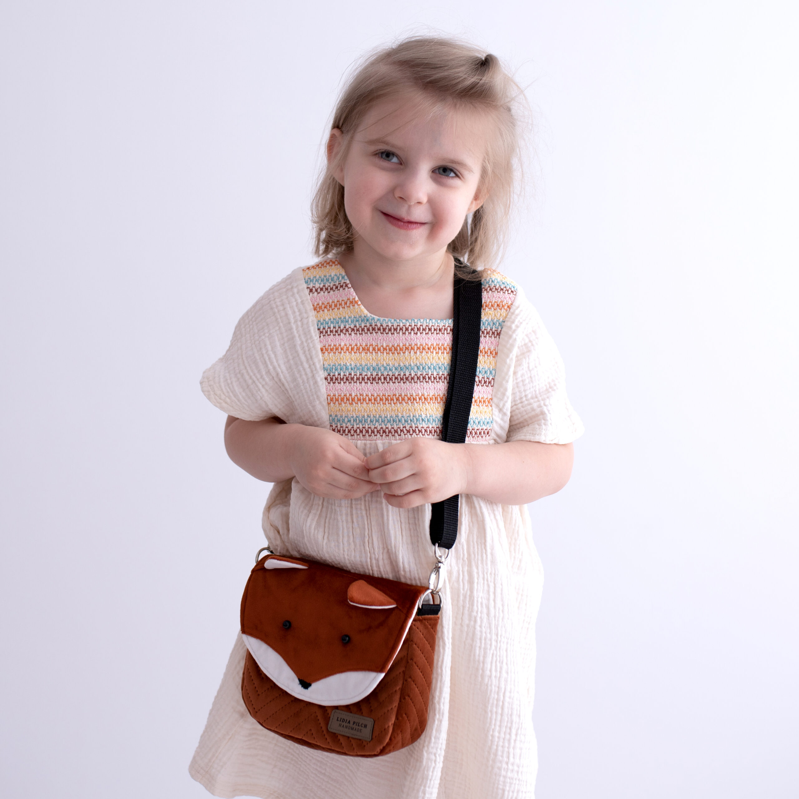 Poszukujesz uroczego i funkcjonalnego dodatku dla małej modnisi? Ta dziecięca torebka na ramię z motywem liska to idealne rozwiązanie! Wykonana z niezwykle miękkiego pikowanego welwetu w odcieniach rudym i białym, torebka zachwyca swoim wyjątkowym urokiem.