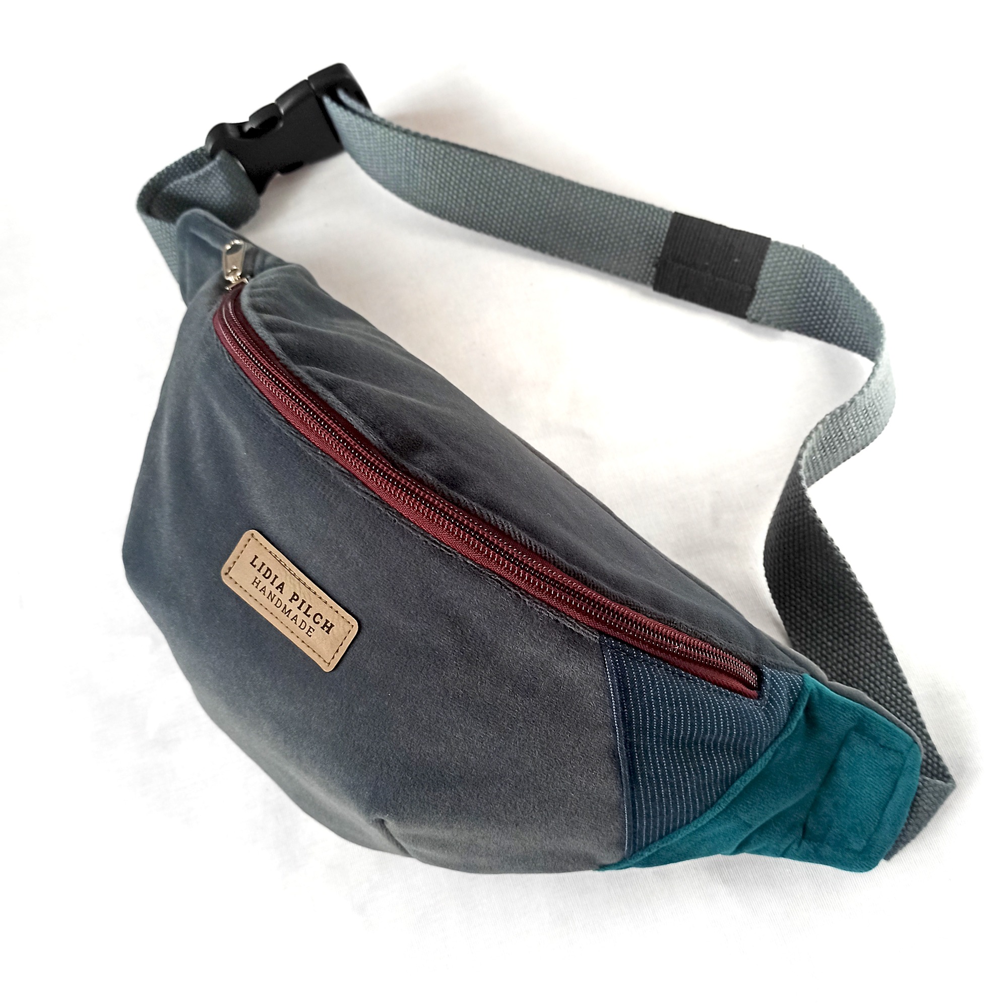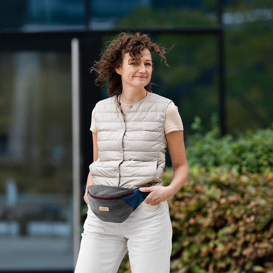 Grafit z elementami morskiego i szmaragdu jest uniwersalnym rozwiązaniem zarówno dla pań  jak i panów. Sprawdzi się jako dodatek do mniej oficjalnych stylizacji. Wygodny, regulowany miękki pasek z praktycznym zapięciem, całkiem spora pojemność oraz oryginalny design będą cieszyły tych, którym zależy na wygodzie i praktycznych rozwiązaniach. Nerkę można nosić na kilka sposobów – albo w sportowym stylu jako klasyczną saszetkę biodrową, albo przewieszoną przez ramię, jak torebkę.