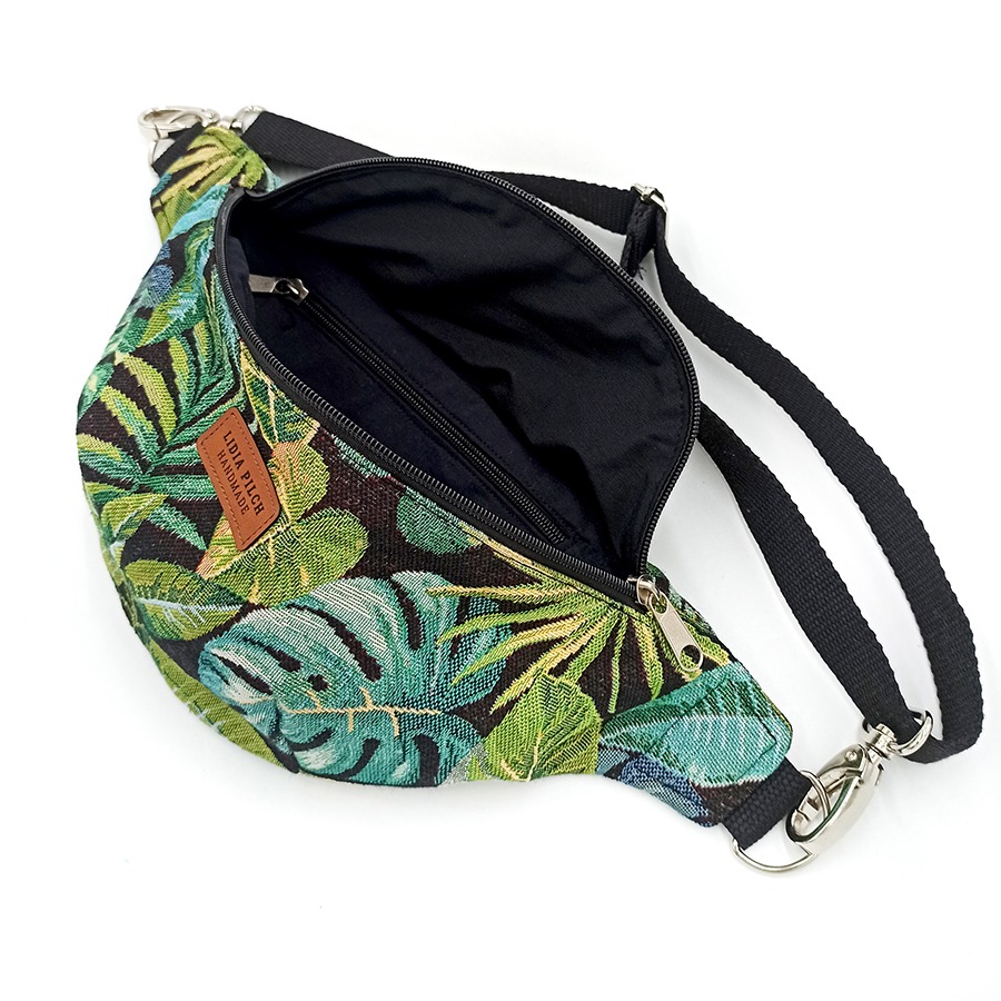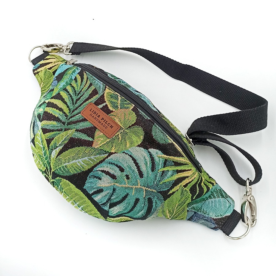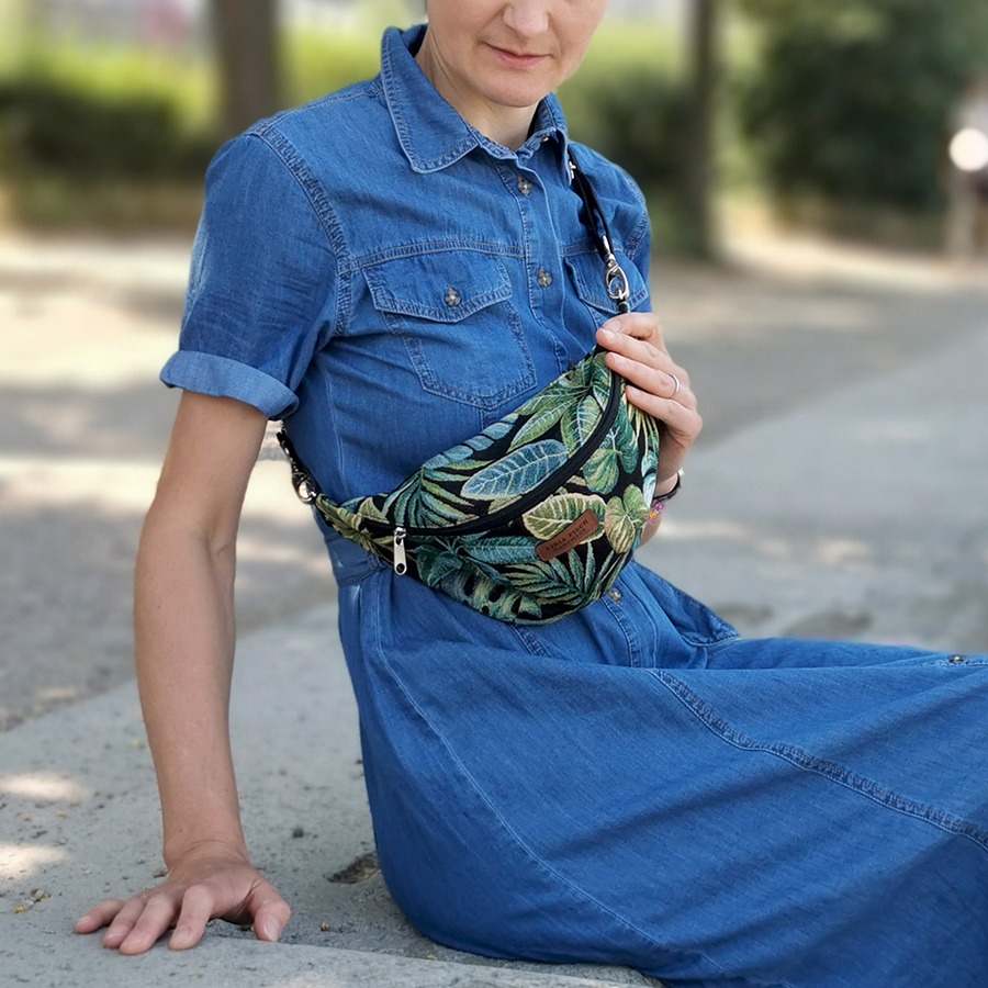Piękny, nieszablonowy wzór, praktyczny rozmiar i kształt, a przede wszystkim ogromna wygoda w trzymaniu wszystkich potrzebnych rzeczy przy sobie – to wszystko łączy w sobie ten model nerkotorebki w pięknym zielono-czarnym wydaniu. Możesz ją nosić na kilka sposobów – albo jak klasyczną saszetkę biodrową, albo przewieszoną przez ramię, jak torebkę. Łatwo dopasujesz też długość paska.