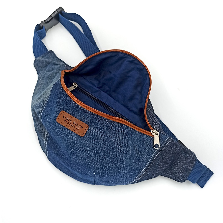 Ta wyjątkowa nerkotorebka z jeansu nie tylko stylowo wygląda, ale jest również produktem ekologicznym: uszyta została z recyclingowych kawałków jeansu, które zyskały swoje nowe życie. Do tego praktyczny rozmiar i kształt, a przede wszystkim ogromna wygoda w trzymaniu wszystkich potrzebnych rzeczy przy sobie – to jej niezaprzeczalne zalety. Możesz ją nosić na kilka sposobów – albo jak klasyczną saszetkę biodrową, albo przewieszoną przez ramię, jak torebkę. Łatwo dopasujesz też długość paska.