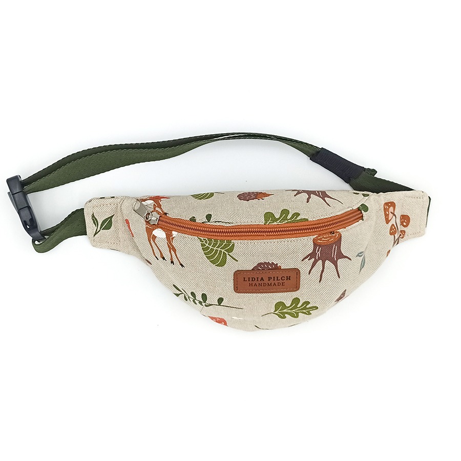 Wersja mini saszetki biodrowej, którą z powodzeniem można również nosić przewieszoną przez ramię, jak torebkę. To z całą pewnością dziecięcy „must have” na drobne wyjścia, wycieczki, czy wszelkie inne wypady, gdzie niezbędne rzeczy trzeba mieć pod ręką, a ważna jest swoboda ruchów oraz wolne ręce. Do tego piękny wzór dodaje uroku małemu odkrywcy.