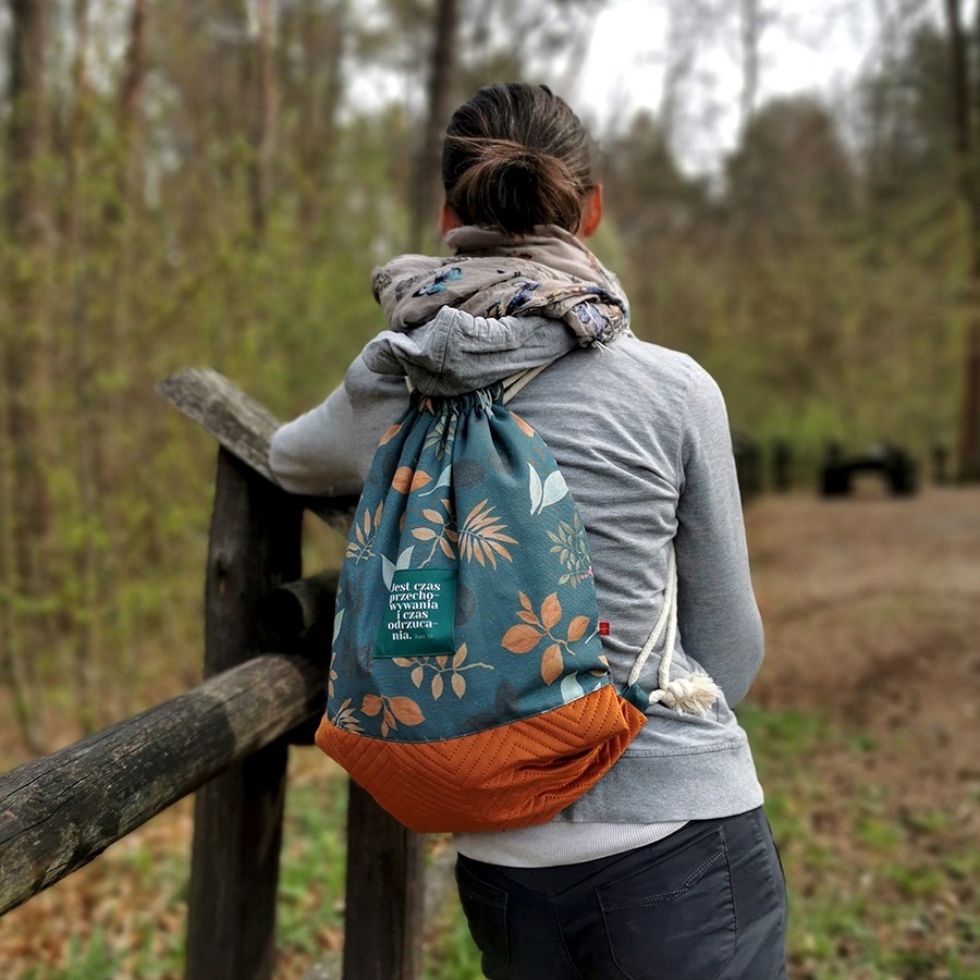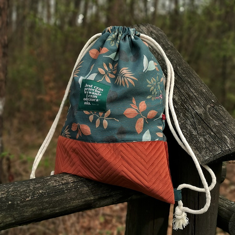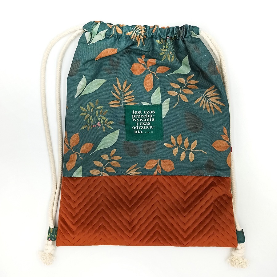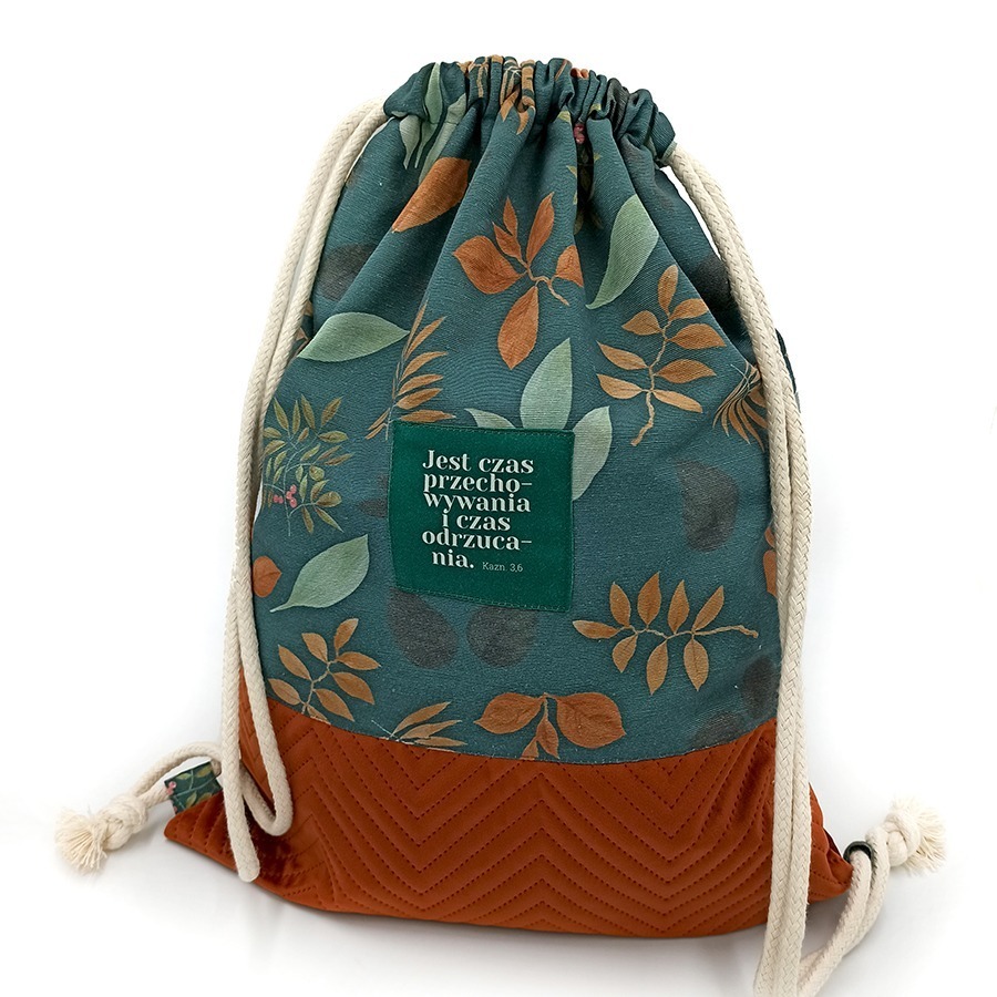 – z przodu ozdobiony jest naszywką z hasłem „Jest czas przechowywania i czas odrzucania”