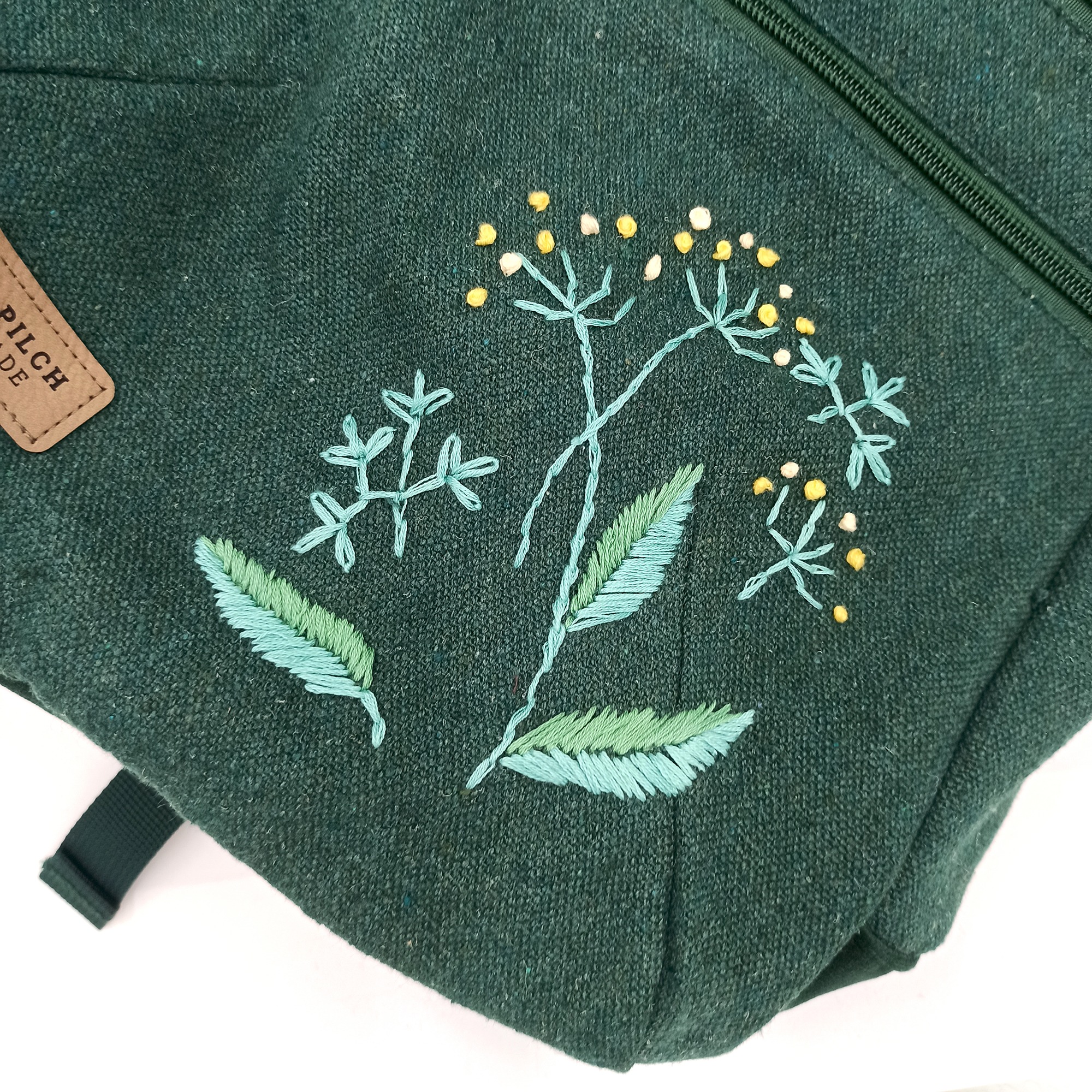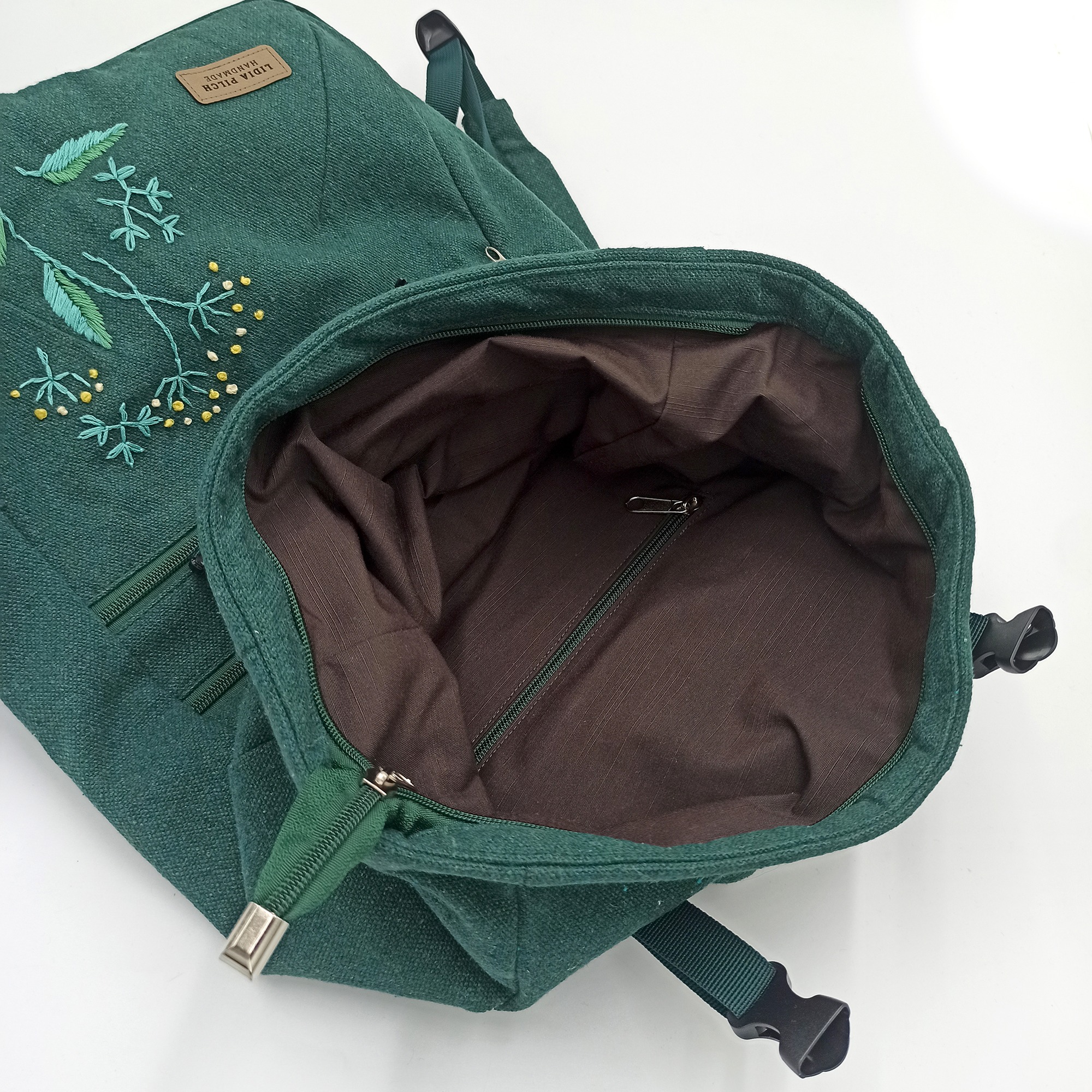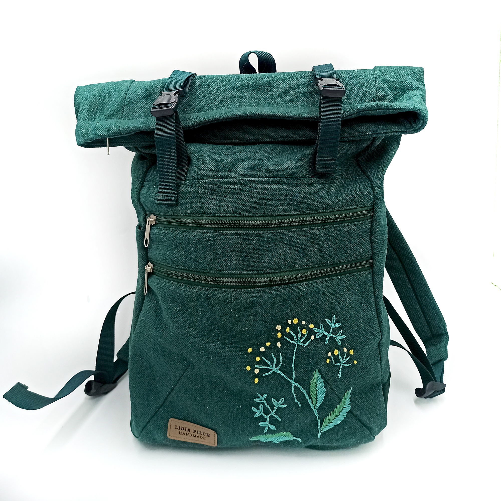 – na przedzie plecaka motyw roślinny ręcznie haftowany