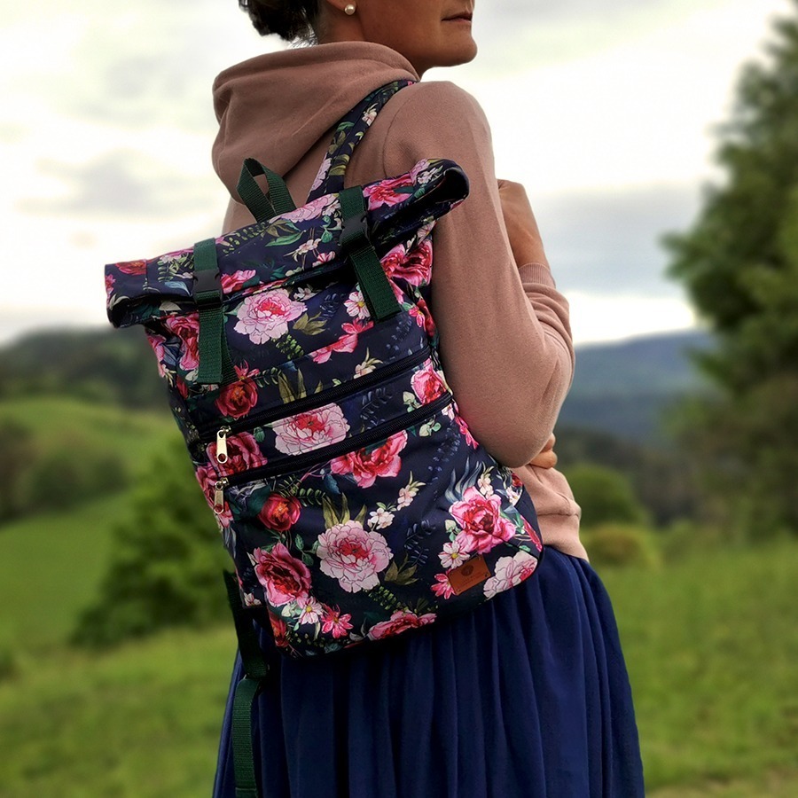 Plecak kurierski – róże na granacie