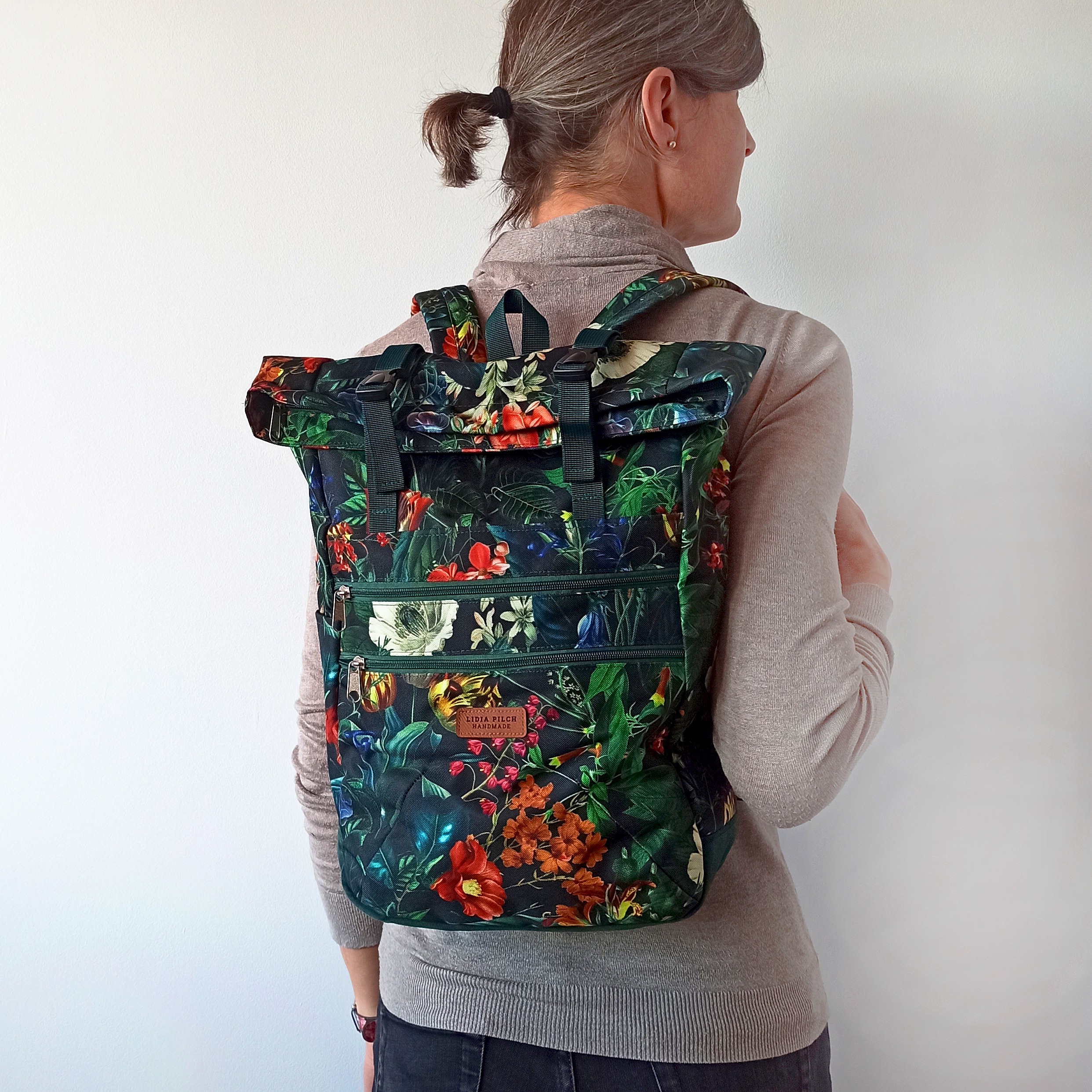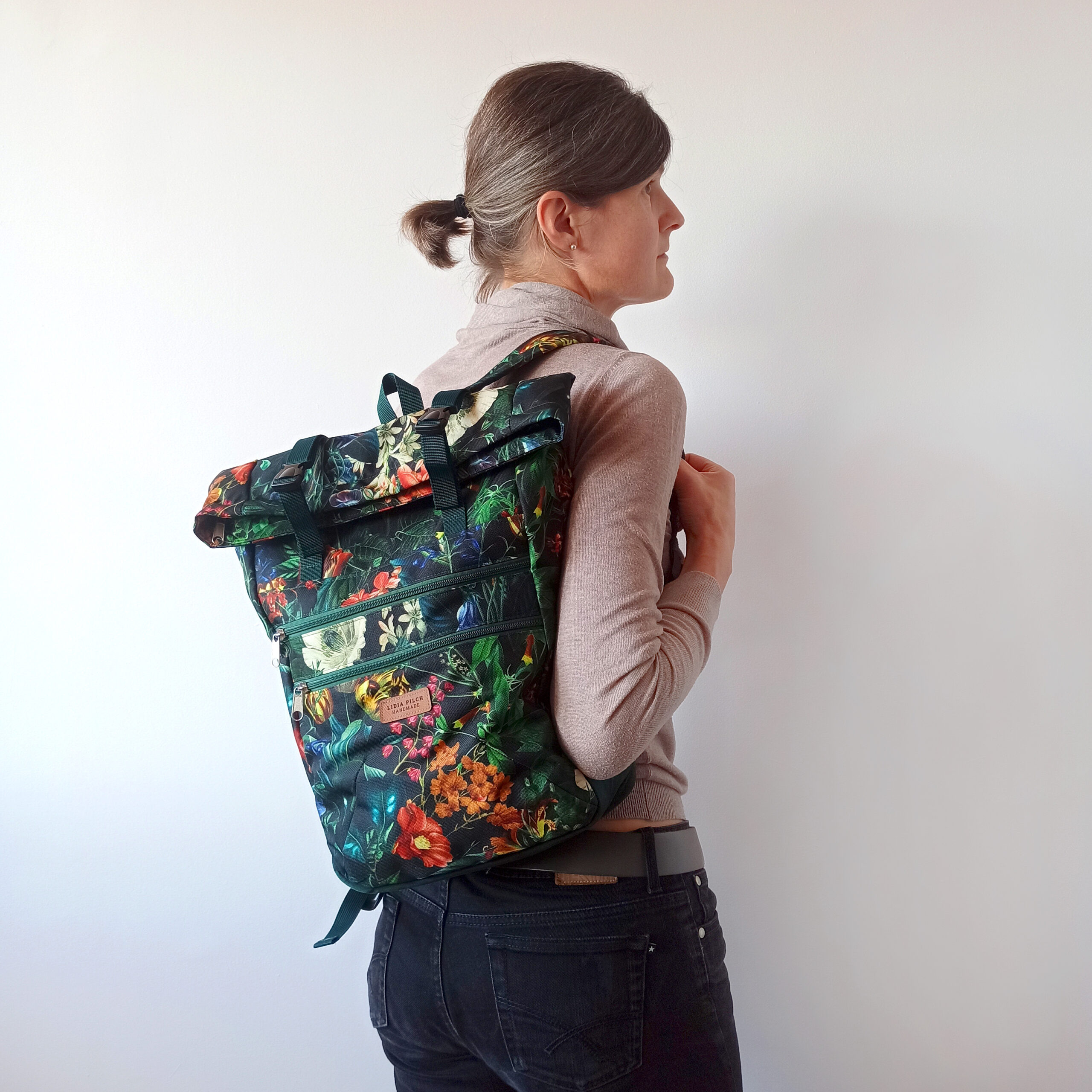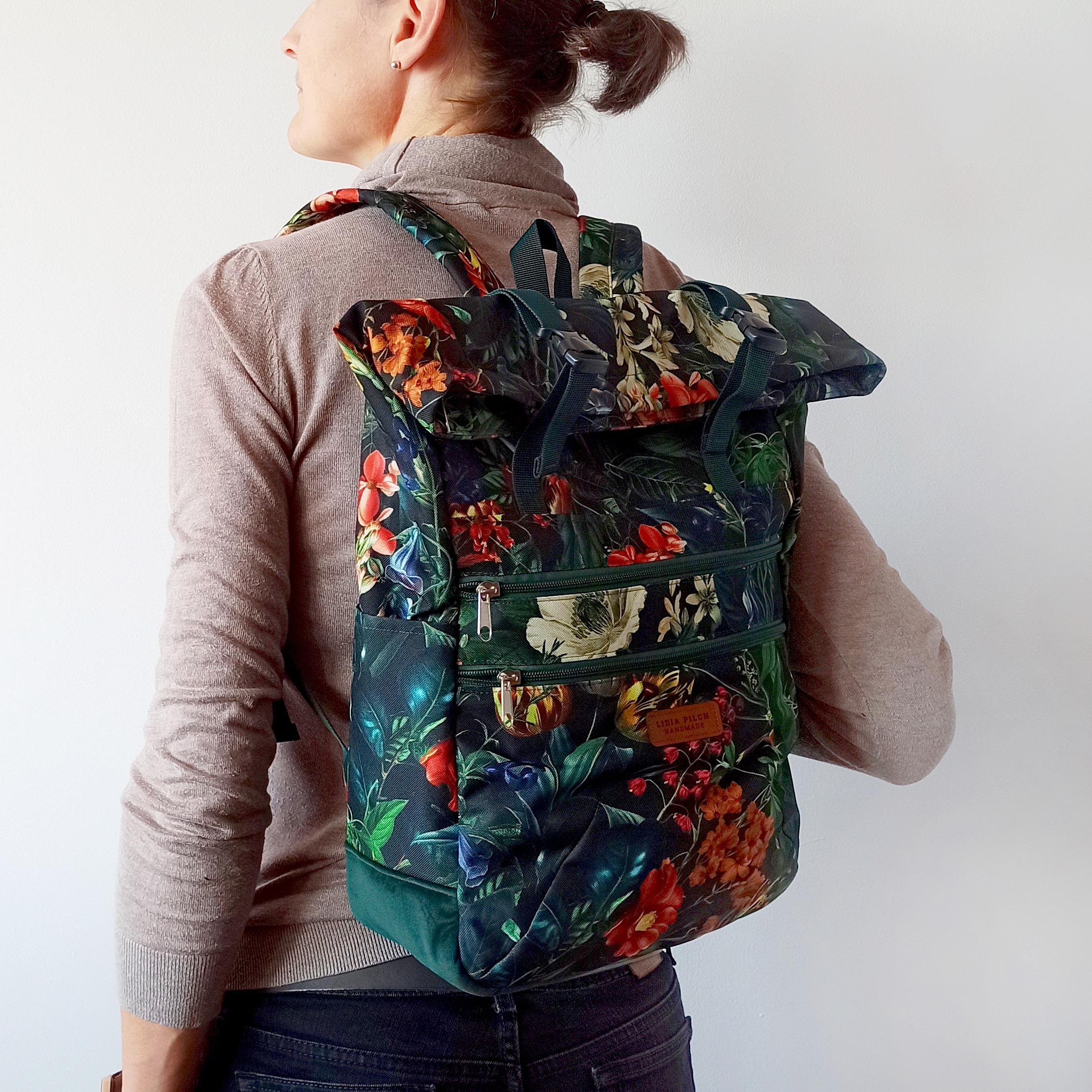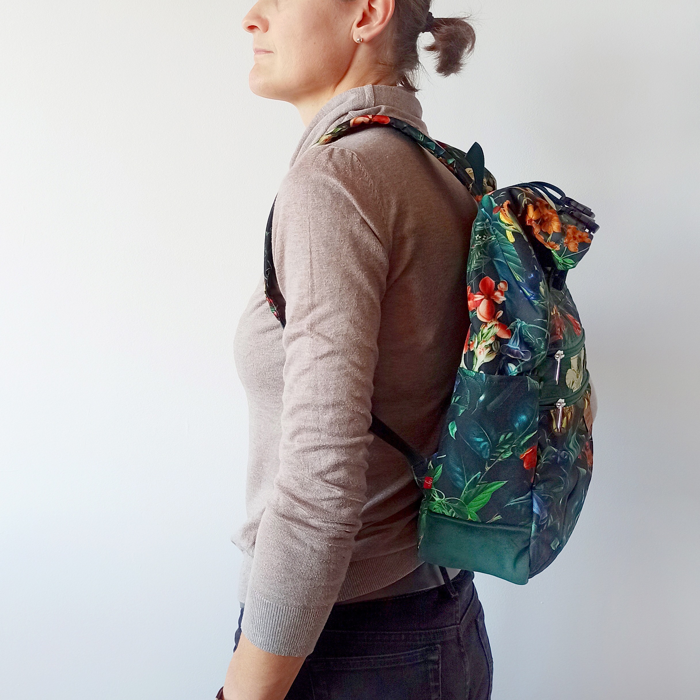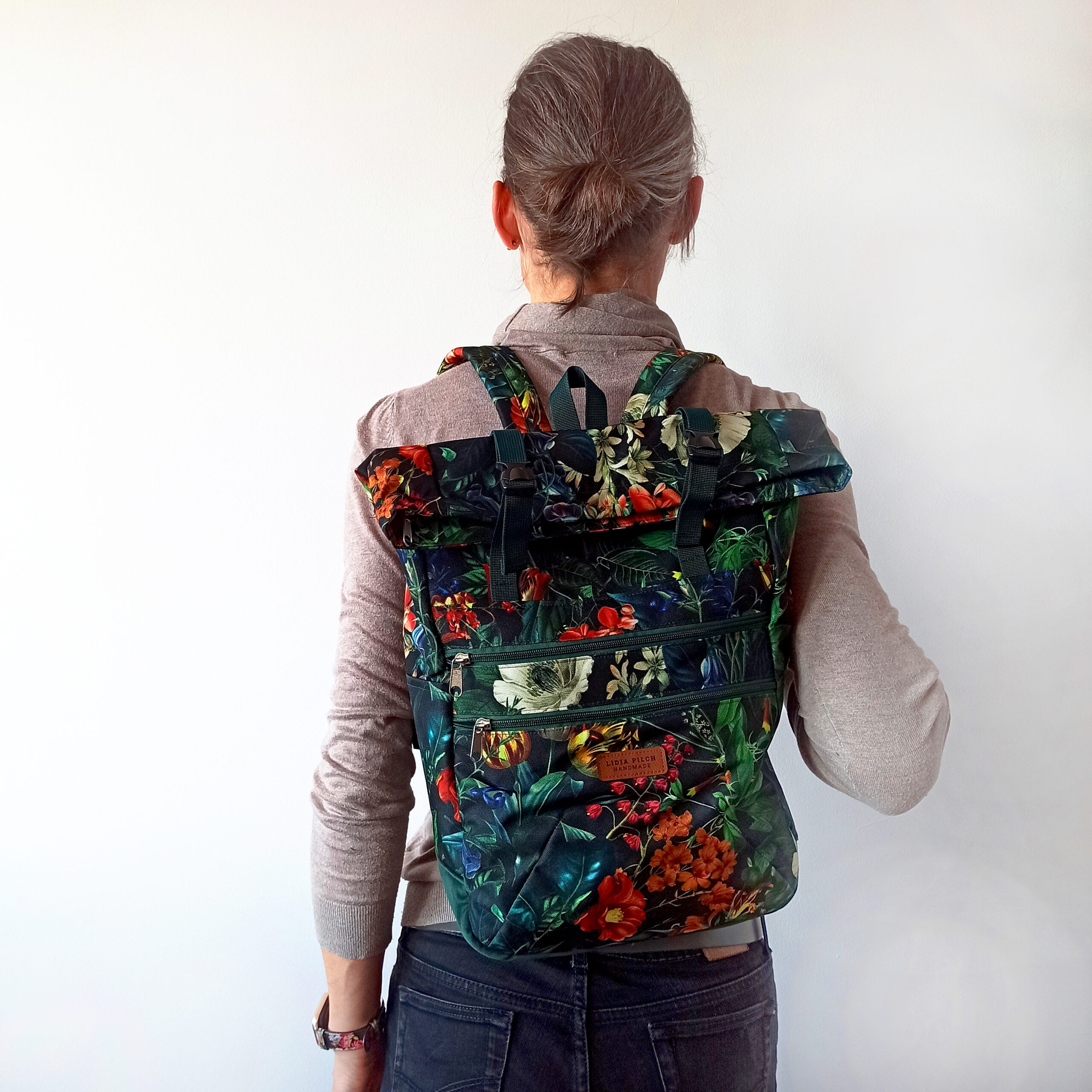 Plecaki szyję w dwóch opcjach: z naturalnego bawełnianego (z niewielką domieszką poliestru) grubego, wzmocnionego płótna oraz w wersji z tkaniny wodoodpornej. Istnieje możliwość wykonania personalizowanego projektu – z wybranej tkaniny i określonych dodatków oraz w większym rozmiarze L. Jeśli interesuje Cię indywidualny projekt, napisz na kontakt@podarunek.art.