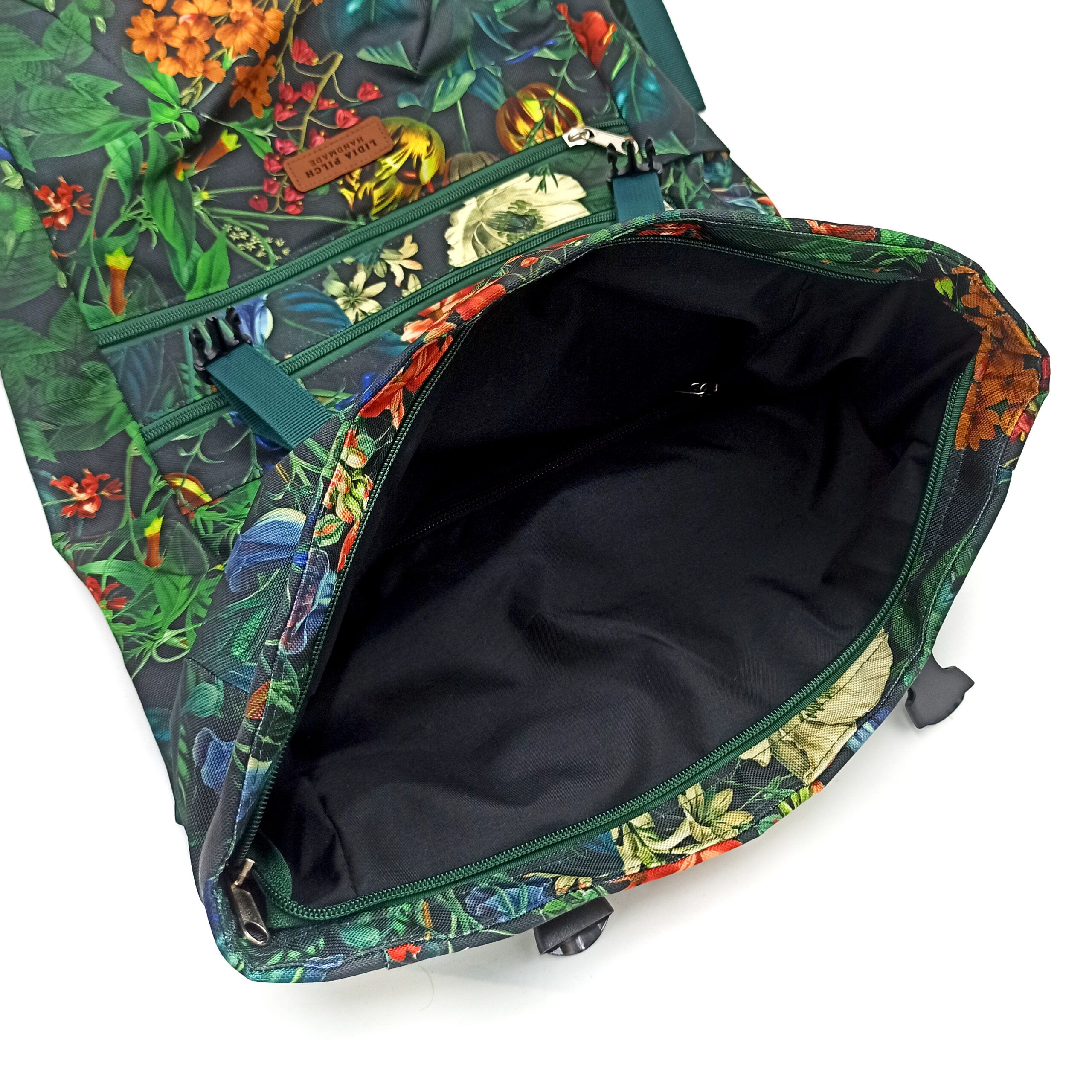 Plecaki kurierskie doskonale sprawdzą się na pieszej bądź rowerowej wycieczce, a to za sprawą bardzo wygodnego ich wnętrza. Plecak wewnątrz posiada cztery kiszonki, z których trzy są zapinane na zamek (jedna w głównej komorze pozwoli bezpiecznie przechować dokumenty czy klucze; dwie zewnętrzne na podręczne drobiazgi) oraz jedna otwarta z boku, gdzie można umieścić na przykład chusteczki. Plecak prezentuje się fantastycznie, jego wzór to delikatne, naturalne liście i zgrabny kształt oraz przede wszystkim niezwykle praktyczna forma. Wspaniałym rozwiązaniem na długie eskapady, okazują się lekko usztywnianie pianką plecy plecaka i wygodne regulowane szelki. Do tego środek wyściełany jest podszewką. Tkanina całości jest wzmocniona, a spód dodatkowo posiada warstwę stabilizującą. Bardzo praktyczne jest też zapięcie – plecak zapinany jest na zamek, dodatkowo na górze wszyte są dwie wygodne klamry. Rozmiar plecaka jest w sam raz, gdyż nie jest on zbyt masywny, a zmieścimy w nim wszystko, co niezbędne. Plecak jest uniwersalny pod wieloma względami, przypadnie do gustu zarówno kobietom, jak i mężczyznom. Poza bardzo ważnym praktycznym rozwiązaniem zachwyca nas oryginalny design, plecak wspaniale się prezentuje i oryginalnie dopełnia niejedną stylizację.