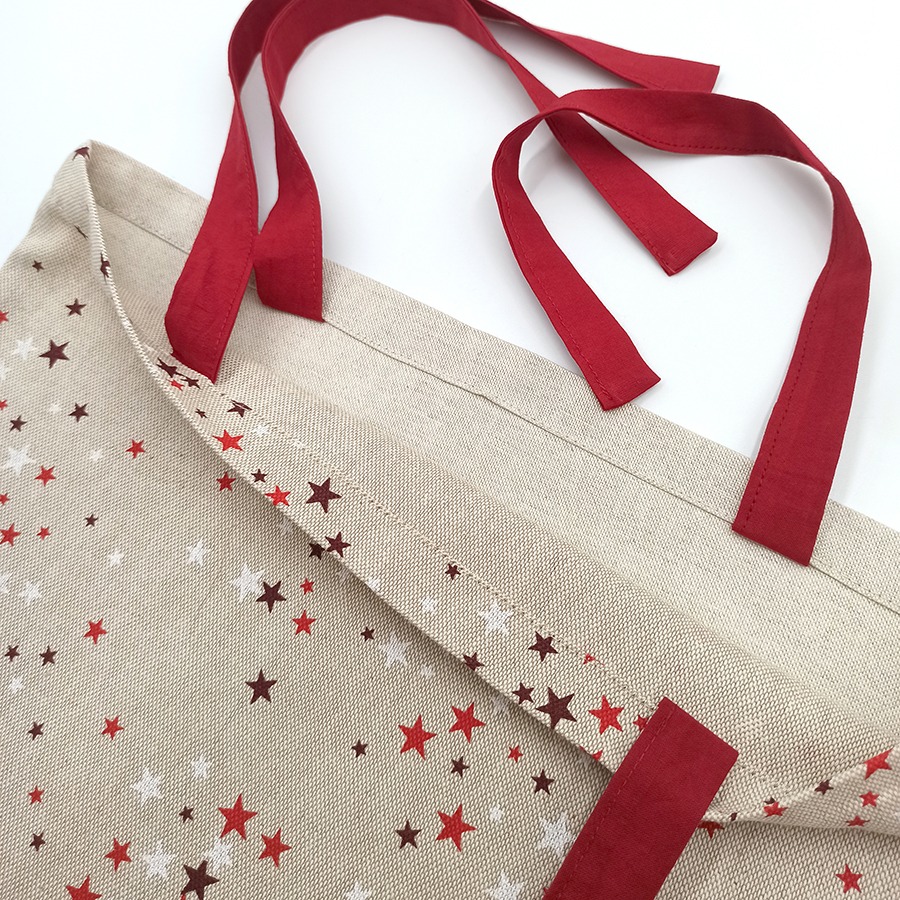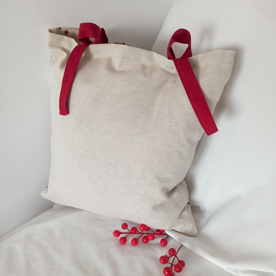 Poszewka na poduszkę wykonana z naturalnej tkaniny w pięknym świątecznym wzorze pomoże stworzyć przytulny i świąteczny nastrój.  Dodatkowo uroku dodają jej taśmy wiązane w kokardy. Materiały są miłe w dotyku i prezentują się niezwykle atrakcyjnie.