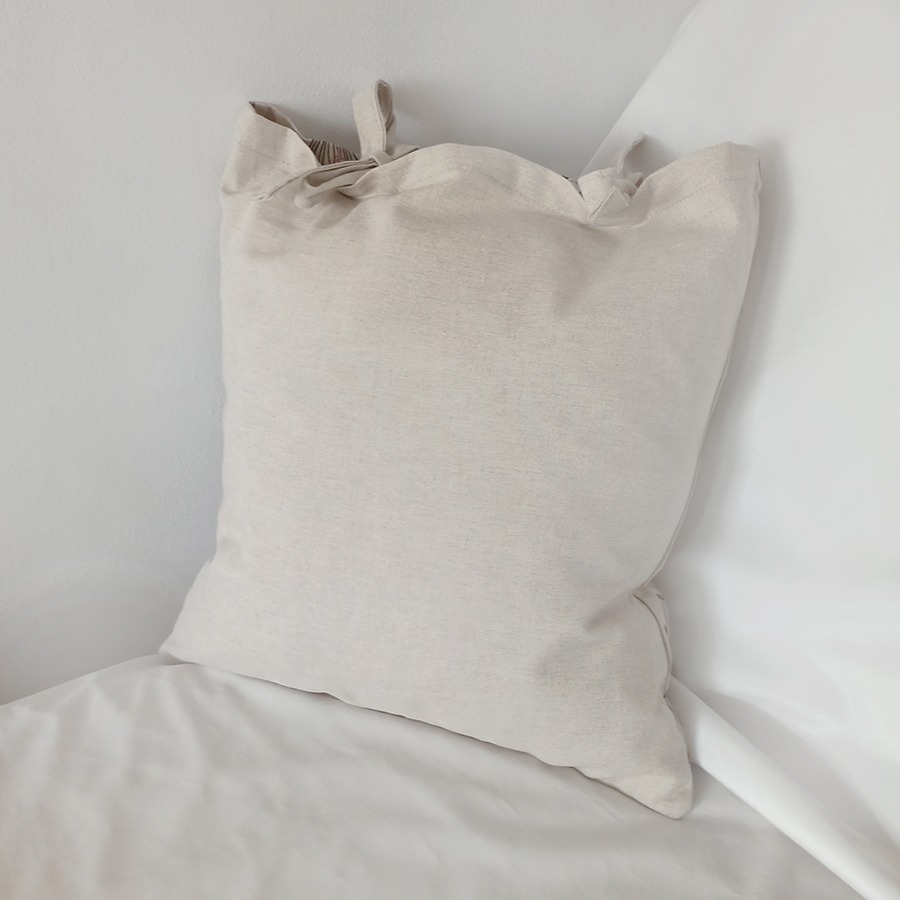 – wiązane taśmy wykonane z bawełny zamykając poszewkę tworzą kokardy