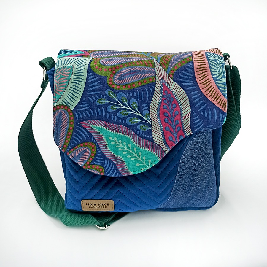 • Torba listonoszka – błękit z niebieskimi liśćmi