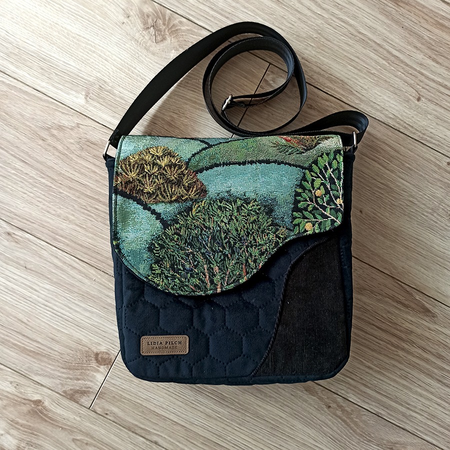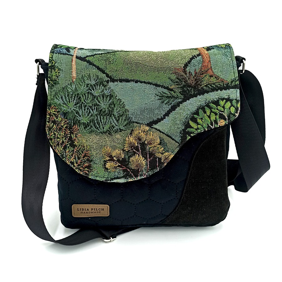 Torba listonoszka – czarny z zielonym pejzażem V2