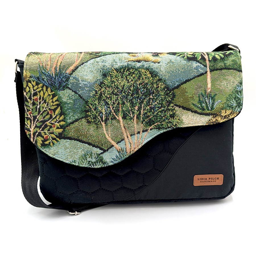 Torba listonoszka – czarny z zielonym pejzażem V2