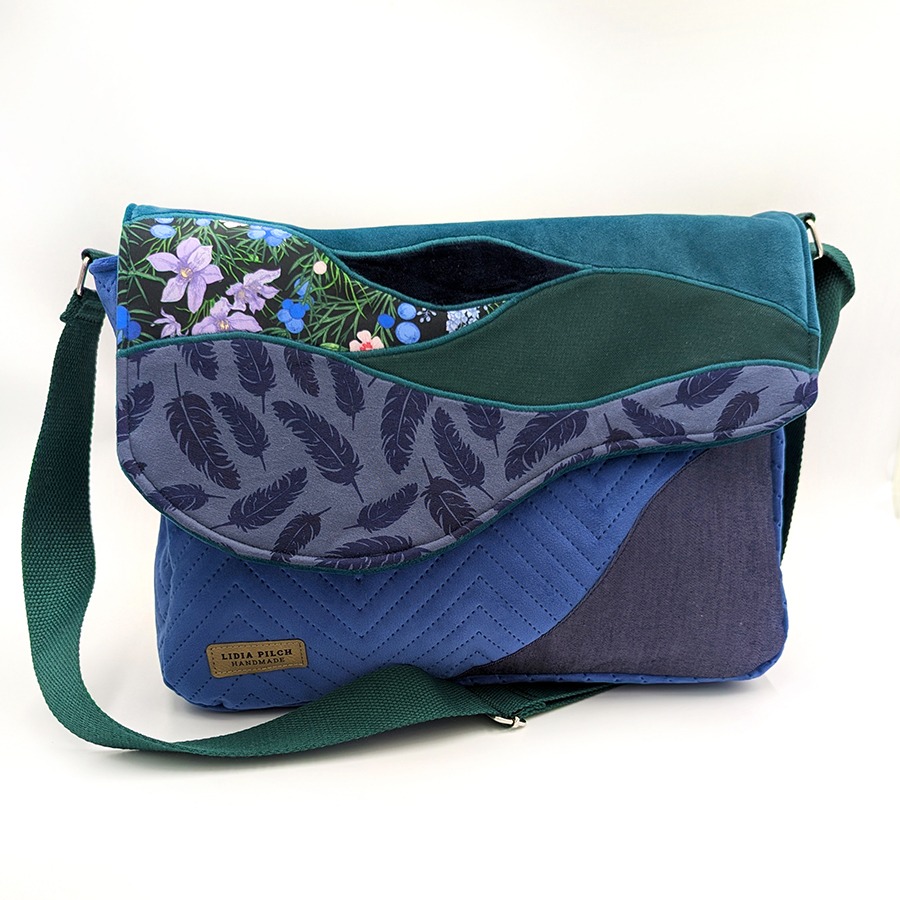 Odkryj harmonię kolorów i faktur w tej niezwykłej, ręcznie szytej torebce listonoszce z autorskiej pracowni Lidia Pilch Handmade. Ten model to propozycja dla kobiet, które szukają akcesoriów z charakterem – odważnych w łączeniu wzorów, a jednocześnie eleganckich i niezwykle funkcjonalnych.