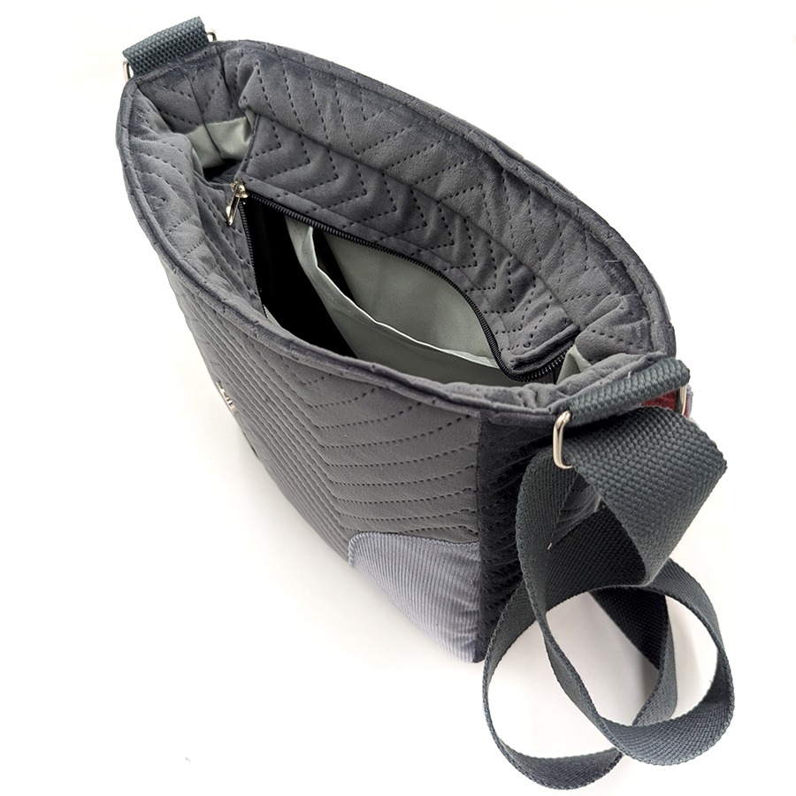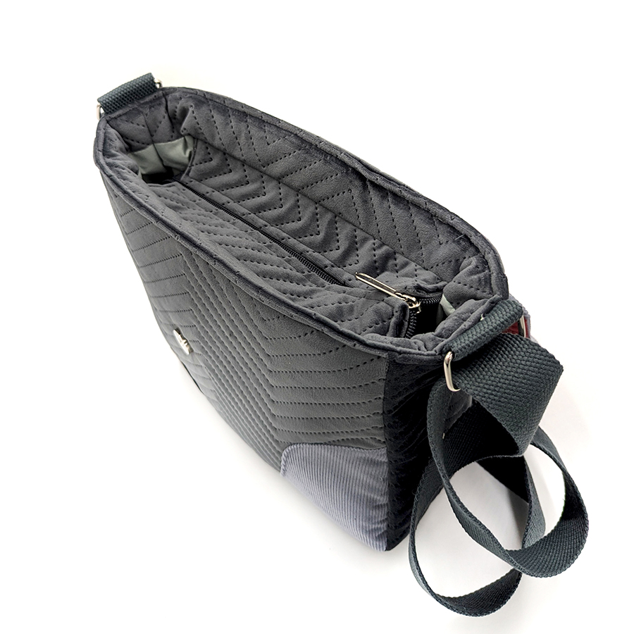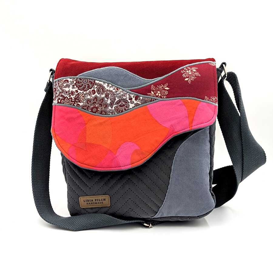 Torba listonoszka – grafit z bordowym pejzażem