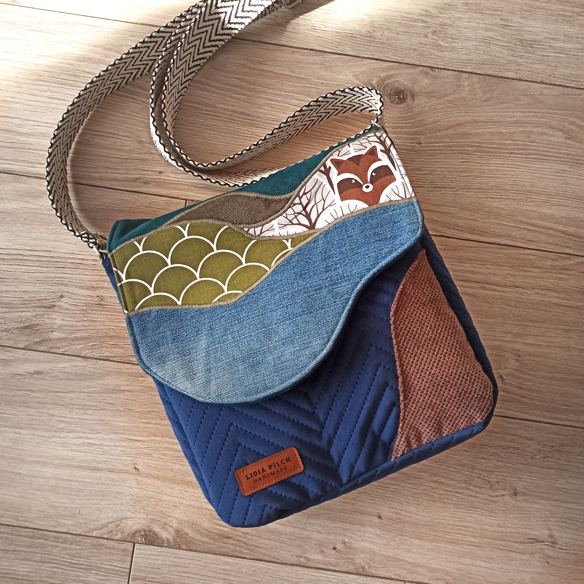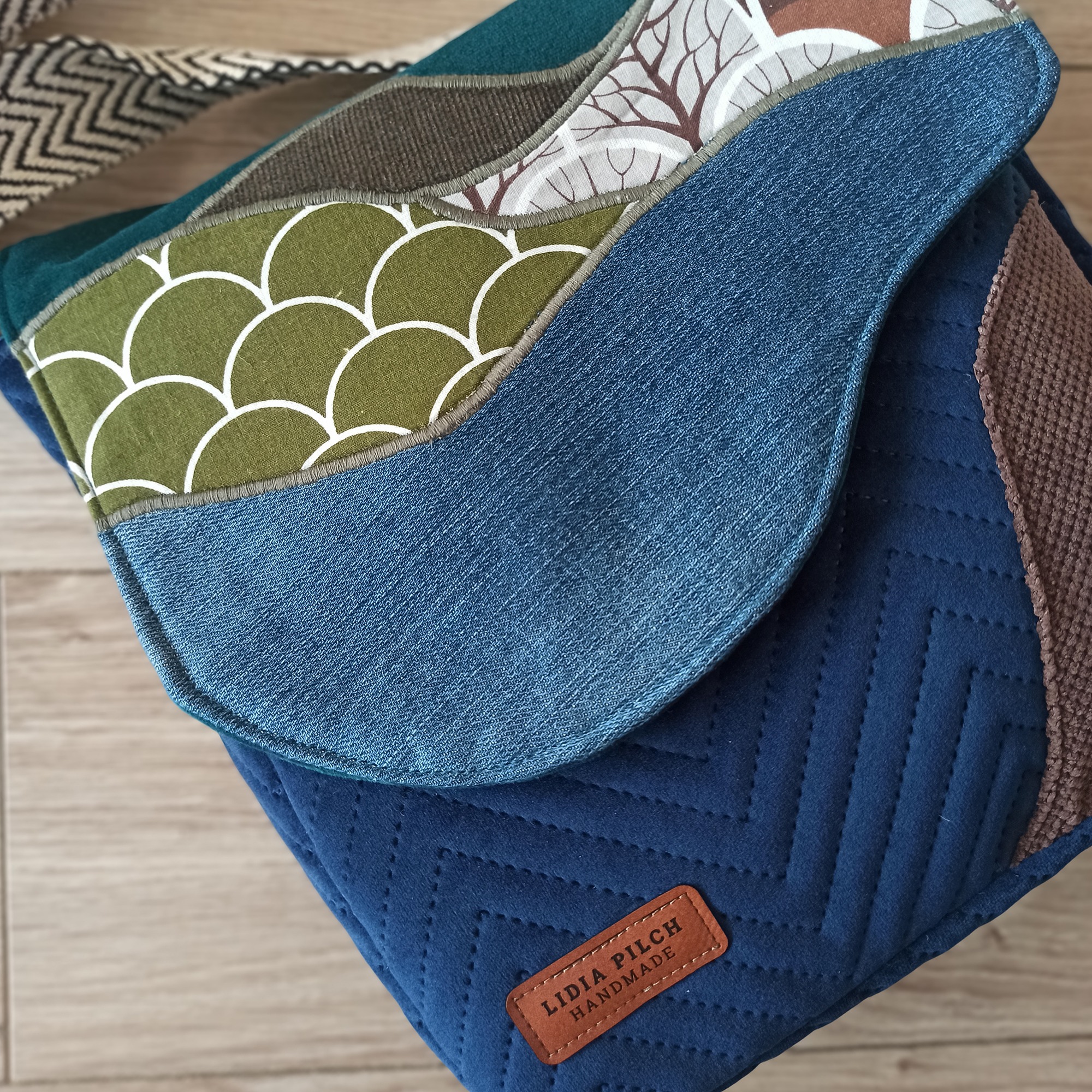 – klapa: velvet z aplikacją uszytą z różnych rodzajów wzorzystych tkanin, zapięcie magnetyczne