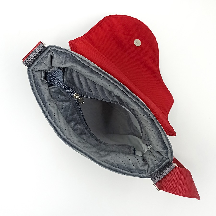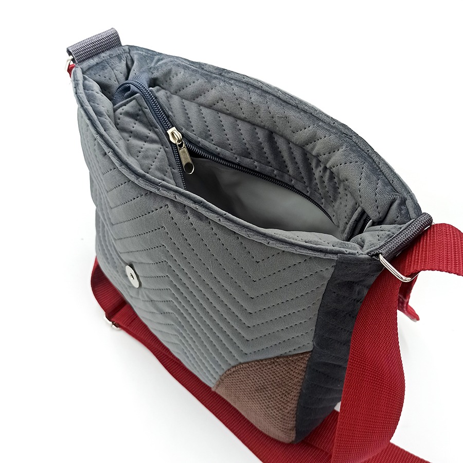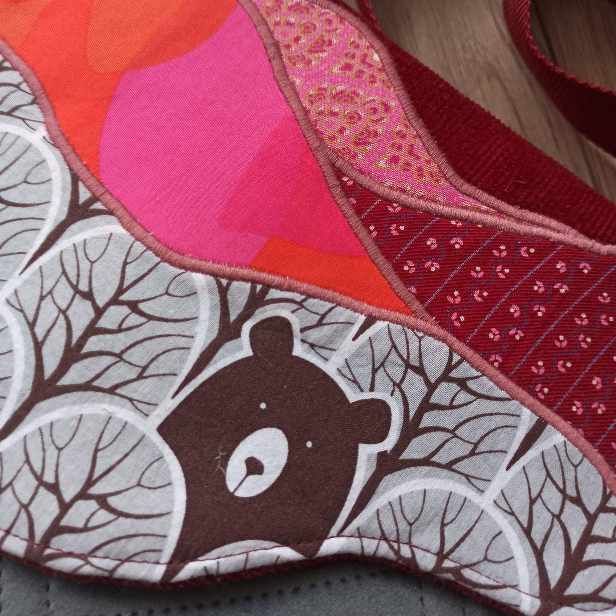 – klapa: sztruks z aplikacją uszytą z różnych rodzajów wzorzystych tkanin, klapa posiada zapięcie magnetyczne