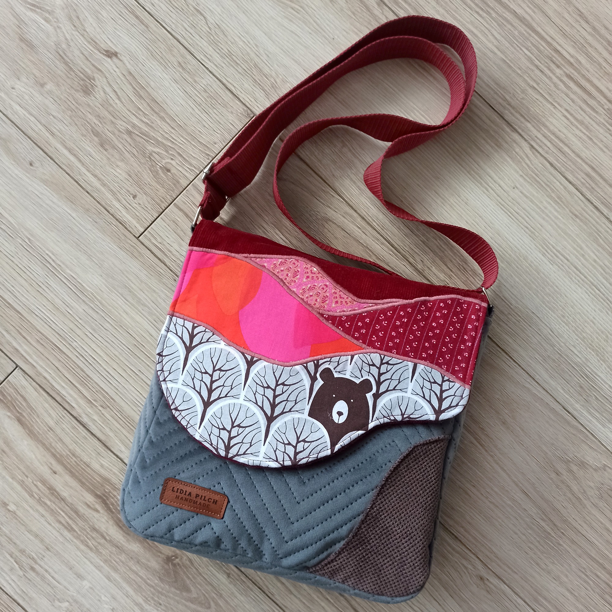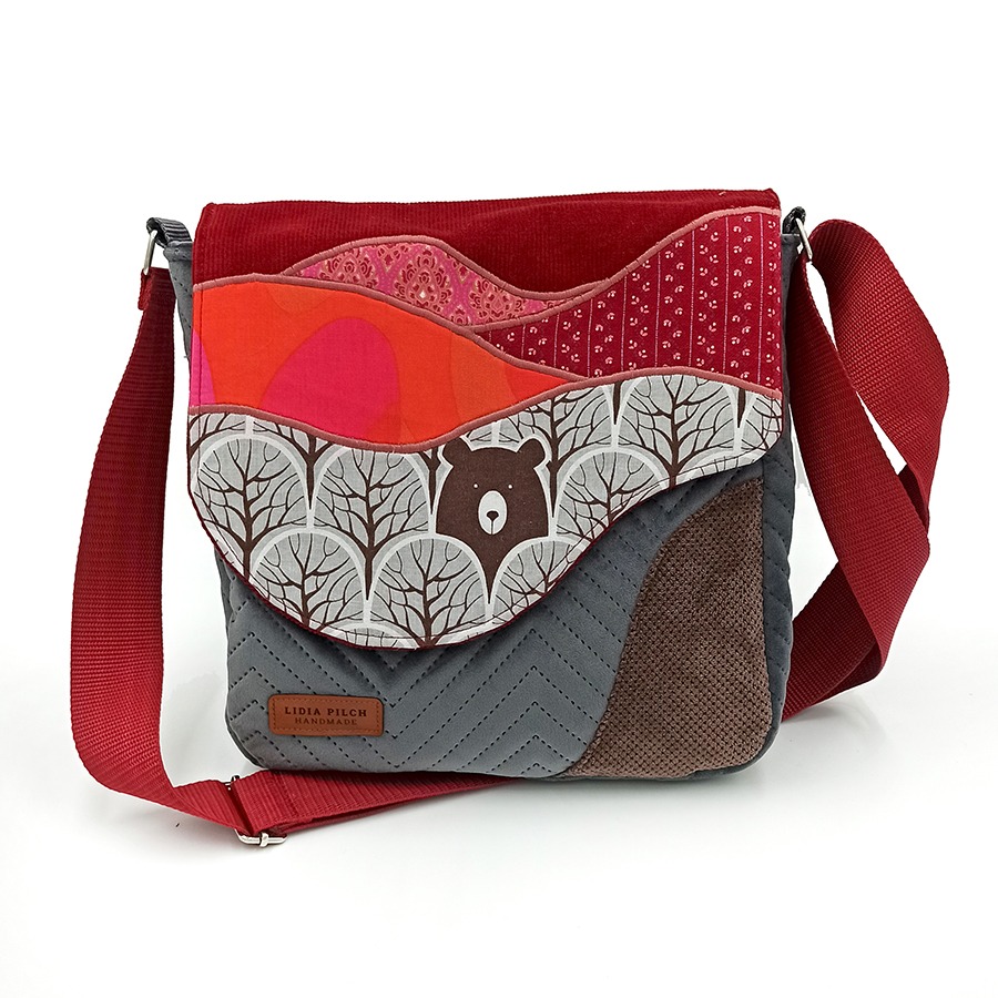 Historia opowiedziana na tej listonoszce wcale nie jest zielona. To raczej odważna i niezwykle dynamiczna pieśń w górskim klimacie. Aplikację na klapie tworzą różne kawałki tkanin bawełnianych. Taką opowieść możesz zabrać do miasta, ale również w plener. Pomieści potrzebne akcesoria, jest też niezwykle praktyczna i bardzo oryginalnie dopełni niejedną stylizację.