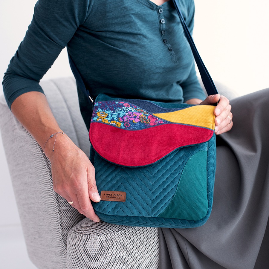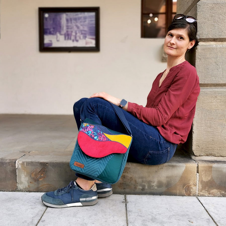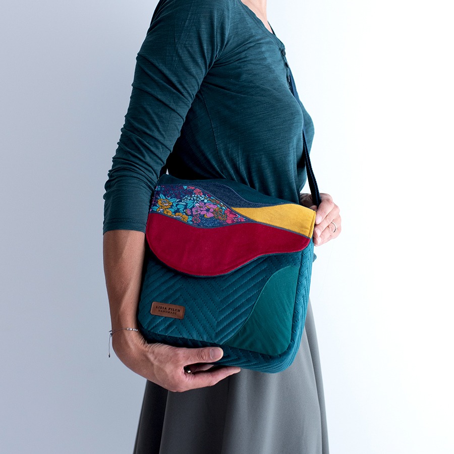Torba listonoszka posiada oryginalne wykończenie klapy na które składa się kompozycja uszyta w technice aplikacji z różnych rodzajów i wzorów tkanin. W ten sposób tworzy się niepowtarzalny pejzaż. Użyte materiały dopasowane pod względem koloru i wzoru w znacznej części pochodzą z recyclingu. Ciekawie dobrane elementy aplikacji opowiadają fragment historii. Reszta należy do tego, kto założy tę oryginalną torebkę. Torby listonoszki oprócz wielu estetycznych zalet są również niezwykle wygodne i praktyczne. Jest to doskonałe rozwiązanie dla osób dbających o komfort i oryginalny styl.  Torba pomieści niezbędne gadżety a przy tym bardzo atrakcyjnie wygląda. To doskonałe rozwiązanie dla kobiet, może być też nietuzinkowym prezentem dla wyjątkowej osoby.